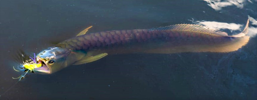 Osteoglossum ferreirai, one of those bonus fish that strike hard, jump a lot and look awesome. This is one of those very ancient species with boney tongues cousin of the huge arapaima. This are very pretty fish!