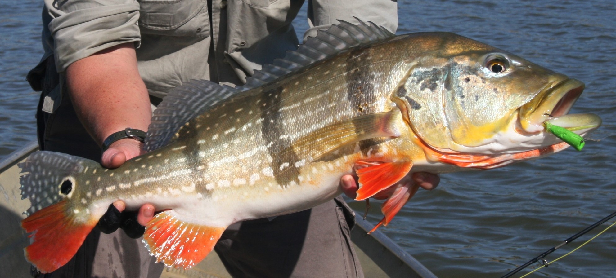 Cichla temensis, the biggest and most famous of all peacock bass species, known to grow up to 30 explosive pounds, still looking for that big guy. This fish have a speckled colloration when thay are sexually inmature and will fade when they reach sexual maturity. Males feature a reddish bump over their heads and are known to look after their fry.