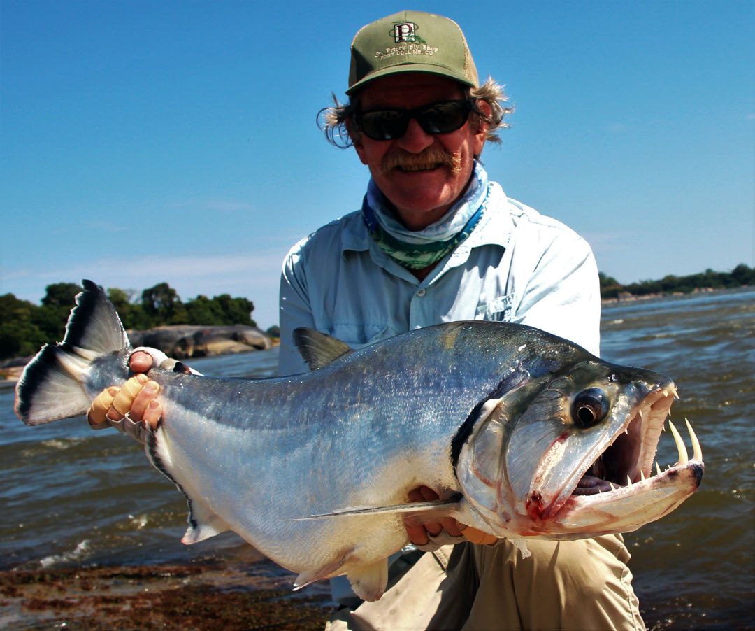 Hydrolycus armatus, one of those great game fish we have at the Orinoco bassin, this fish has an amazing head with incredible fangs! Will prefer currents to hunt but you will see them in slower wáter chasing prey along the shore lines. This is a fish that can reach up to 40 pounds, the common sizes are between 10 to 25 pounds. This is a strong and fast fish that will rip off line and jump while at it